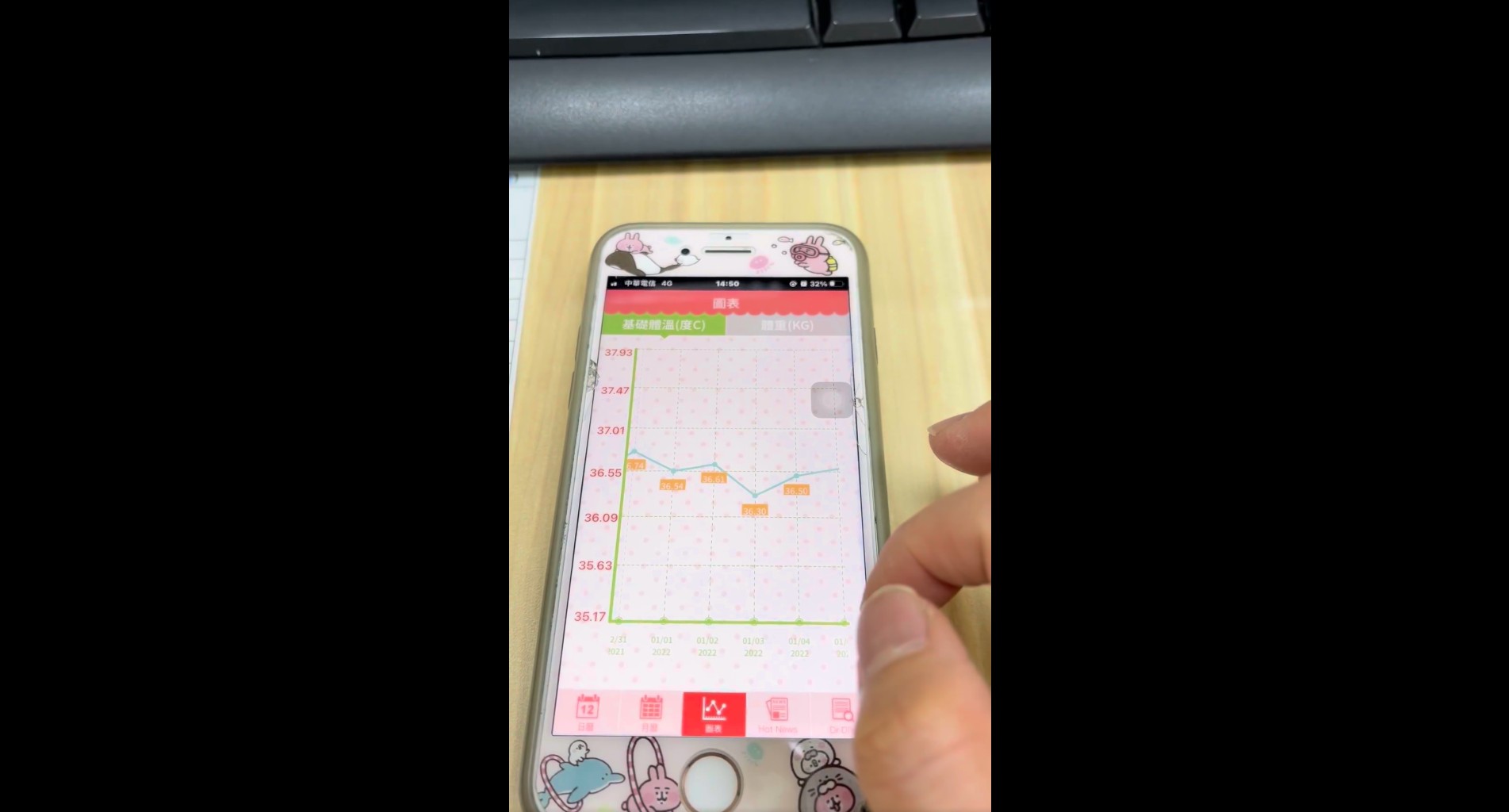 影片為C小姐的基礎體溫,高溫大於16天懷孕的曲線。